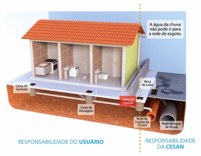 A ligação das instalações domiciliares à rede pública é feita através do Ponto de Coleta instalado pela Cesan em frente ao imóvel. A tubulação que liga o imóvel à caixa na calçada deve ser instalada pelo morador. Do Ponto de coleta até a rede pública, a responsabilidade é da Cesan. O usuário deve procurar a Cesan para buscar orientações de como proceder. Os contatos com a Cesan podem ser por meio do telefone 115 ou nos escritórios de atendimento presencial. Caso não obtenha as informações necessárias com a Cesan, poderá entrar em contato com a Ouvidoria da ARSP pelo telefone 0800 280 8080 com o número de protocolo do contato da Cesan em mãos.